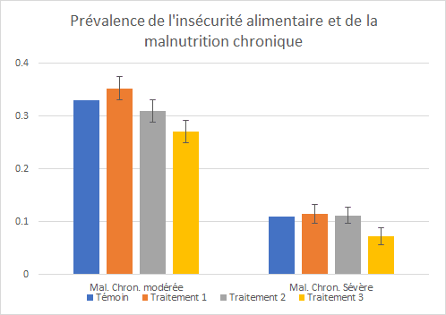 Les conclusions de notre étude de recherche nous indiquent que les objectifs nutritionnels et développementaux du programme PROMIRIAN/RESIAN ont été atteints de manière assez spectaculaire lorsque toutes les interventions (TMI, IP, N) sont mises en œuvre ensemble. Cette stratégie a fait baisser d’un quart la malnutrition chronique sévère qui s’accompagne naturellement d’une baisse plus faible du nombre d’enfants en malnutrition aiguë (qui mesure la malnutrition à l’instant t). Nos résultats montrent aussi que le programme a contribué à baisser l’insécurité alimentaire sévère d’environ un quart. Par ailleurs, nos résultats indiquent que les ménages qui bénéficient de l’ensemble des interventions (groupe T3) possèdent davantage de terres agricoles à la fois en nombre de parcelles possédées et en taille et investissent plus dans les équipements agricoles. Le programme, lorsqu’il est mis en œuvre dans son entièreté, a donc un effet démultiplicateur sur les comportements des ménages: Ils investissent plus à la fois dans la nutrition de leurs jeunes enfants et dans leur propriété et outils agricoles.