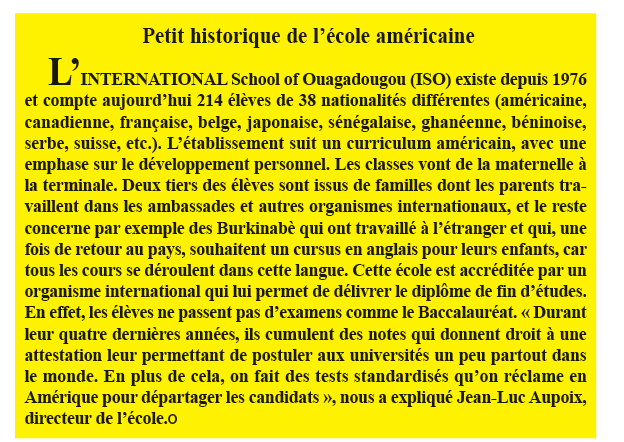 Selon les explications de Jean-Luc Aupoix, directeur de l’école de l’ISO (International School of Ouagadougou) où fréquentent ces deux enfants, une grande majorité des élèves, après la classe de terminale, accèdent à l’université en Amérique du Nord ; un certain nombre opte d’aller dans d’autres pays du monde. Raison pour laquelle l’école enseigne les langues étrangères dont le français. A l’en croire, cela va du niveau débutant, c’est-à-dire des gens qui ne parlent pas un seul mot, quel que soit leur âge, aux personnes dont la maîtrise du français est proche de la maternelle. « Le fait d’inscrire le DELF dans notre cursus est aussi un moyen de reconnaître la maîtrise de la langue française, de valoriser la culture francophone et de permettre aux gens d’accéder aux richesses culturelles très développées au Burkina », a-t-il signifié, précisant que c’est un diplôme externe reconnu de manière internationale. Cette deuxième promotion compte 42 élèves. « Le projet-pilote a commencé l’année dernière avec huit enfants. Cette année, on rend le passage de l’examen obligatoire pour tous nos élèves en âge de le passer » dixit le premier responsable de l’institution. De ce que nous avons pu comprendre, il serait éventuellement possible de reconsidérer soit le niveau soit l’année de passage, si certains ne se sentent pas prêts ; surtout pour ceux qui arrivent en milieu d’année (janvier) alors que l’examen est prévu pour le mois de mai.