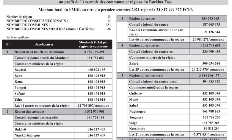 En 3 ans, la somme de 96.398.054.322 milliards FCFA a été collectée et répartie au titre du Fonds minier de développement local (FMDL) à l’ensemble des collectivités du Burkina Faso.