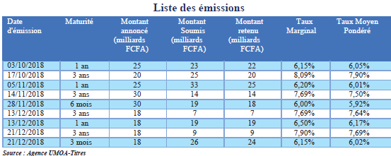 Cette émission visait à mobiliser l’épargne des personnes physiques et morales, en vue d’assurer la couverture des besoins de financement du budget de l’Etat, gestion 2019.