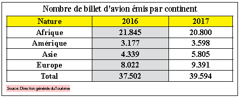 Toutefois, les enquêteurs soulignent que ces résultats positifs contrastent avec ceux du tourisme récepteur dont les arrivées ont connu une baisse de l’ordre de 5,6% par rapport à 2016.