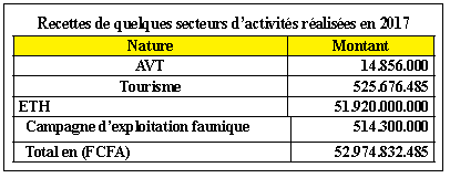 Conséquence, le motif «safari et chasse» a enregistré son taux le plus bas jamais connu, soit – 67,6% par rapport à 2016. Une situation qui a eu des répercussions sur les recettes de l’Etat, si on prend uniquement le cas de la campagne d’exploitation faunique 2016-2017 où les recettes enregistrées ont connues une légère baisse et s’établissent à 514,3 millions.