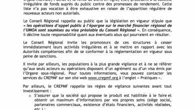 Les cotations de chaque soumissionnaire, libellées en FCFA ou en Euro, devront être accompagnées des pièces contractuelles exigées dans les documents de l’appel d’offresainsi que le reçu de paiement.