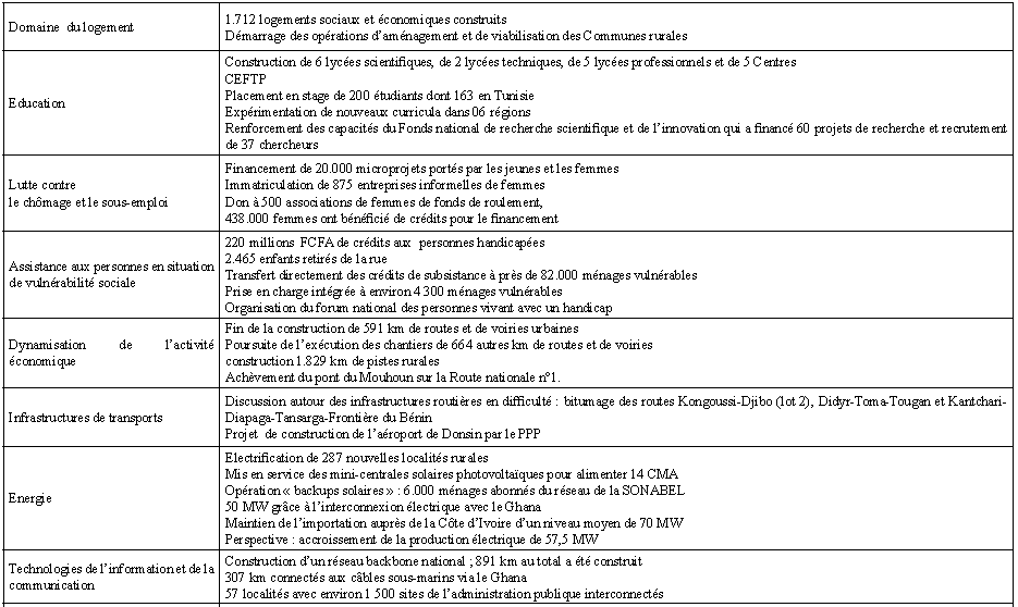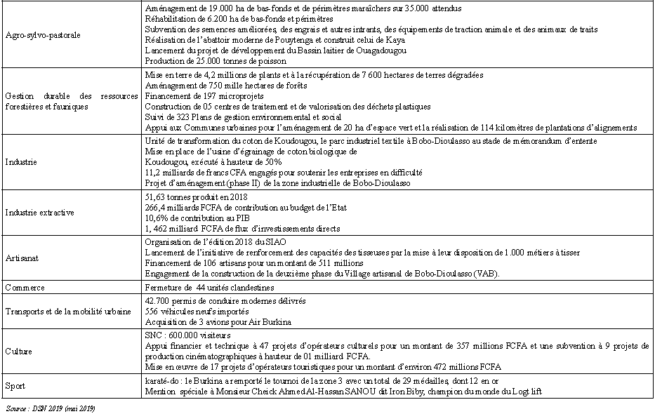 Quant au taux d’investissement public, il est passé de 8% en 2017 à 10% du PIB en 2018. A travers le Programme d’urgence pour le Sahel, 154 projets d’investissement d’un montant de 111 milliards F CFA ont été exécutés pour la plupart entièrement en 2018. Pour ce qui est du Programme d’appui au développement des économies locales (PADEL), il a déjà permis, dans la région du Sahel, d’investir un montant total d’environ 3 milliards F CFA en faveur de 797 promoteurs d’unités de production informelles, de réaliser des infrastructures socio-économiques et de financer 617 micro-entreprises promues par les femmes et les jeunes.