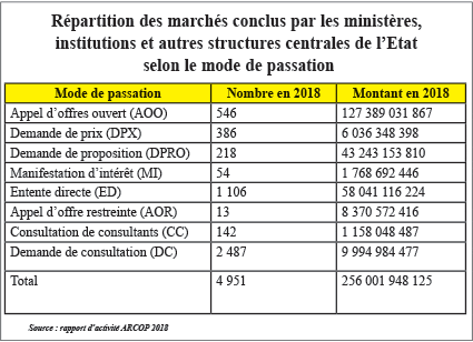Commande publique 2018 : 256 milliards FCFA pour 4 951 marchés
