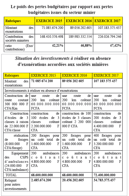 Cependant, que représentent ces pertes budgétaires par rapport à la contribution des sociétés minières ?