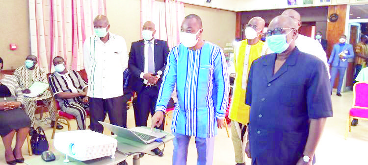 Le ministre du Commerce, de l’Industrie et de l’Artisanat, Harouna Kaboré, et le premier vice-président de la CCI-BF, Mamady Sanoh, ont donné le top départ des activités du PARE COVID-19. (B24)