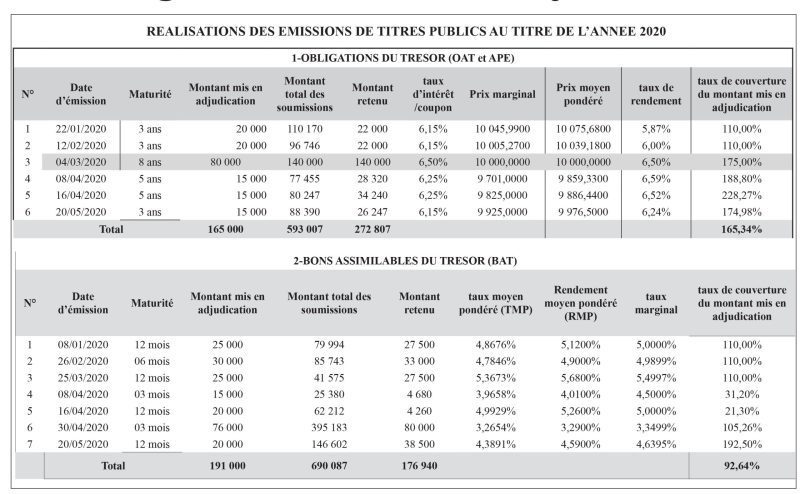 Au total, à la date du 20 mai 2020, le Trésor a levé 448 milliards sur le marché financier régional sur un objectif de 873 milliards de francs. o