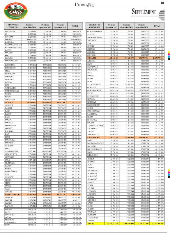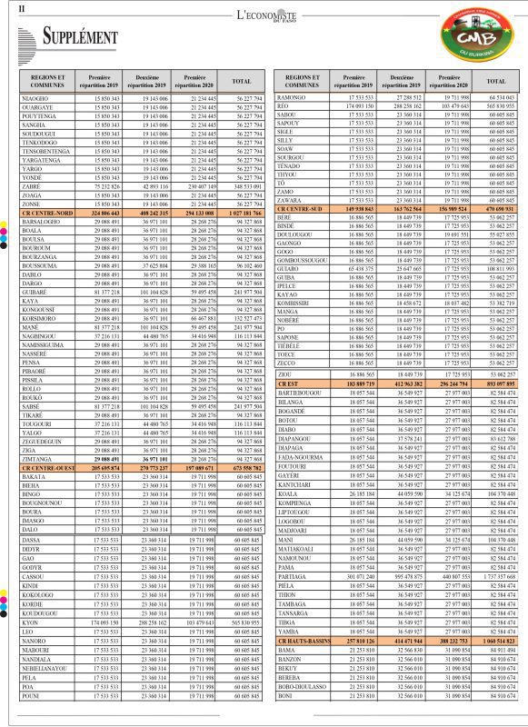 Le Comité de suivi du Fonds minier de Développement local (CS-FMDL) s’est réuni courant la première semaine du mois d’août. A l’issue de sa première session de l’année 2020, un montant total de 21,465 milliards FCFA (exactement 21.465.516.999,5 FCFA) dont 12.965.063.579 FCFA, soit 60,40% collectés représentent la part des sociétés minières, c’est-à-dire les 1% du chiffre d’affaires et 8.500.453.421 FCFA, soit 39,60% du montant, représentant la part de l’Etat (20% des redevances proportionnelles). Il y a eu deux précédentes répartitions ce qui porte le montant total à plus de 51 milliards de franc CFA. Dans le lot des communes bénéficiaires, on note que 5 communes qui sont milliardaires en montant cumulés (Falagoutou, Gorom Gorom, Houndé, Partiaga et Bagassi). Nous vous proposons , le tableau récapitulatif des paiements en 2019 et 2020 du fonds miniers de développement local.