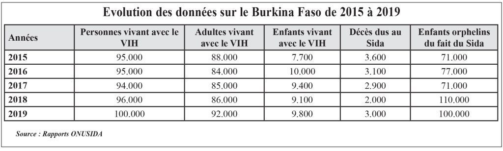 Le taux de prévalence du VIH-Sida au Burkina Faso est de 0,7% en 2019. Les personnes vivantes avec le VIH sont estimées à 100.000, dont 9.800 enfants de moins de 15 ans. Ces données tirées du rapport 2020 de l’ONUSIDA ont été présentées le 19 mars 2021 à la faveur de la 19e session du Conseil national de lutte contre le Sida et les infections sexuellement transmissibles. Pour le Conseil national de lutte contre le Sida et les IST (CNLS-IST), « cette maîtrise de la dynamique de l’infection à VIH est confortée par les données de la surveillance sentinelle chez les femmes enceintes qui semblent indiquer une stabilisation de la prévalence au cours des dernières années ».