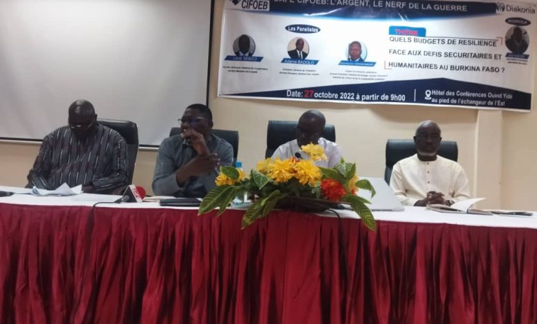 «Quels budgets de résilience face aux défis sécuritaires et humanitaires au Burkina Faso » ? Le Centre d’information, de formation et d’études sur le budget (CIFOEB) a posé la question, le 27 octobre 2022, à Ouagadougou, au cours d’un café-débat. Le Directeur général de l’Ecole nationale des régies financières (ENAREF), Adama Badolo, le Directeur exécutif du Bureau national des grands projets du Burkina Faso, Moumounou Gnankambary, et le consultant indépendant et ancien ministre de la Santé, Léné Sebgo, ont répondu sans ambages : « Le pays doit se doter d’un budget de guerre » pour 2023. Ils s’appuient sur l’aggravation de l’insécurité, la hausse des personnes déplacées internes. A cela s’ajoute la difficulté de mobilisation des recettes fiscale dans certaines contrées depuis 2015.
