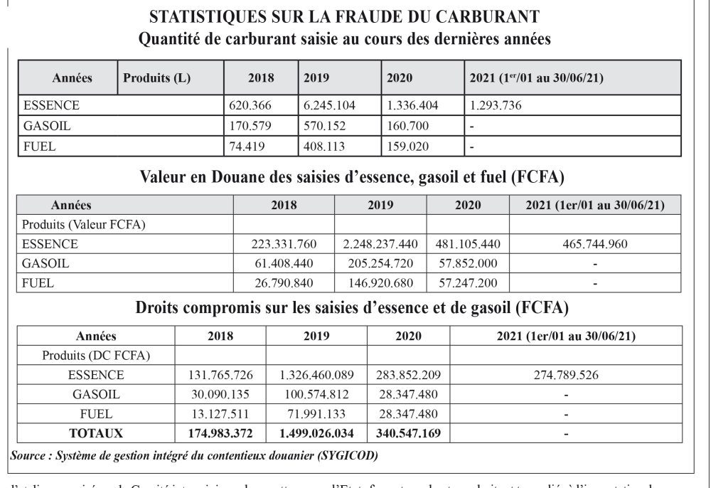 Du point de vue de la Douane, les conséquences de la fraude du carburant sur l’économie nationale sont connues : perte de recettes pour l’Etat, fermeture de stations et perte d’emplois, mauvaise qualité du carburant vendu aux populations, insécurité (incendie et risque d’alimentation de groupes terroristes et du grand banditisme).
