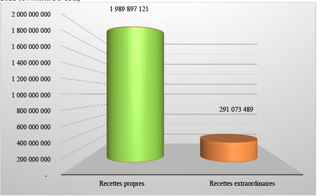 La décomposition des recettes propres indique une prédominance des recettes fiscales représentant 87,81% des recettes propres de 2022.