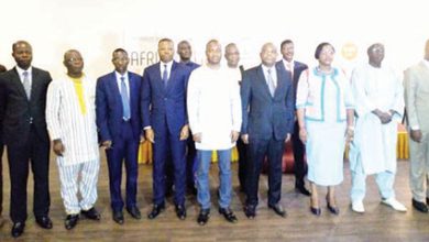 Les premiers responsables de Coris Bank International avec le Directeur général de Coris Holding, Emmanuel Sawadogo (3e à partir de la gauche). (Ph. Yvan Sama)