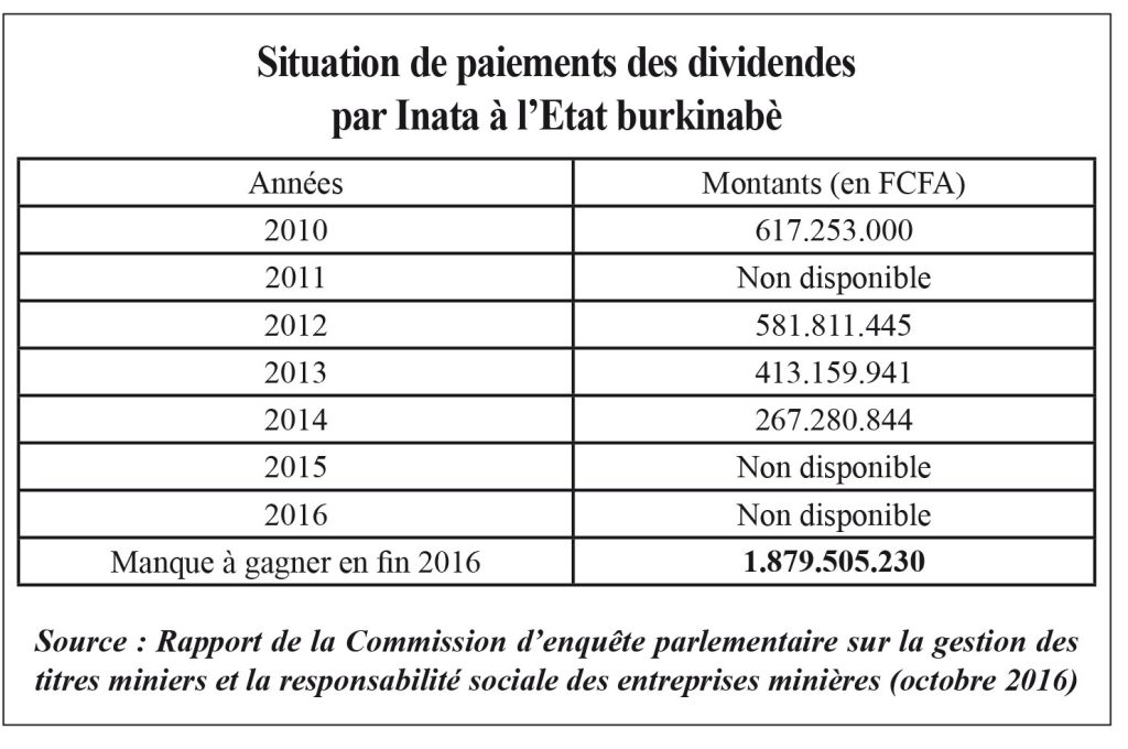 Le non-paiement des dividendes représente 1,879 milliard FCFA pour les années 2011, 2015 et 2016.o