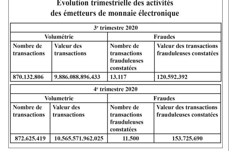 Le nombre de fraudes via les transferts de monnaie électronique a baissé au 2nd semestre 2020. C’est le constat qui ressort du rapport semestriel de surveillance des moyens et services de paiement (11 novembre 2021) par la BCEAO. Selon les statistiques, les émetteurs de monnaie électronique ont déclaré 24.617 cas de fraudes pour un montant de 274,32 millions FCFA. Ces chiffres sont en baisse par rapport à ceux du 1er semestre de l’année d’étude du rapport. A fin juin 2020, ces mêmes émetteurs ont déclaré 35.440 cas de fraudes pour une valeur de 766,61 millions FCFA.