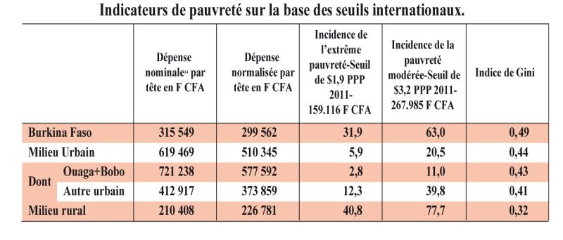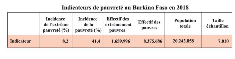 L’Institut national de la statistique et de la démographie (INSD) a publié en janvier 2022, son diagnostic de pauvreté et élevé le seuil de pauvreté dont la valeur est de 194.629 FCFA par personne et par an. Au plan international, le seuil est de 584.000 FCFA par an Les indicateurs de la pauvreté