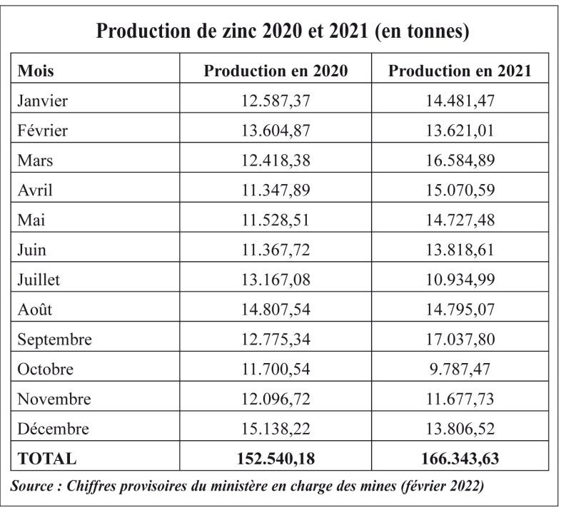 Outre l’or, le Burkina Faso exploite d’autres ressources, dont le zinc et l’argent. La production de zinc affiche 166.343 tonnes en 2021, contre 152.540 tonnes en 2020, soit une hausse de 8,30% entre les 02 années.