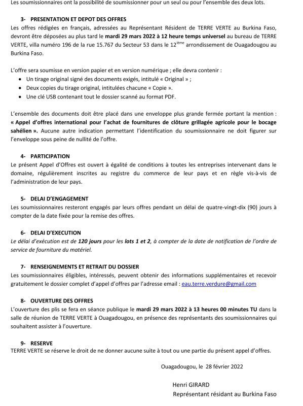 AVIS D’APPEL D’OFFRES OUVERT