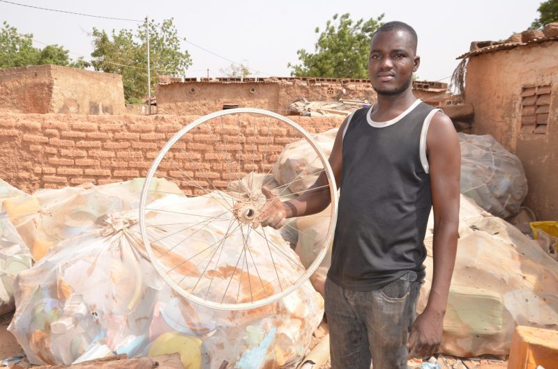 «J’exerce cette activité depuis une année. C’est rentable, car ça me permet de subvenir à mes besoins », a laissé entendre Sawadogo Alassane, collecteur de ferraille à Ouagadougou. Je collectionne des objets usés recyclables, poursuit-il, que je revends auprès des grands collecteurs. Il s’agit des métaux usés, notamment, le fer, l’aluminium, le cuivre, le plomb et aussi le plastique et la batterie. Installé au secteur 19 de Ouagadougou (Somgandé), monsieur Sawadogo stocke sa « marchandise » dans un magasin. Devant, un stock est protégé par une clôture en tôle. Le plastique est empilé dans de vieilles moustiquaires. Comme Sawadogo Alassane, plusieurs collecteurs de ferraille excercent dans la ville de Ouagadougou.