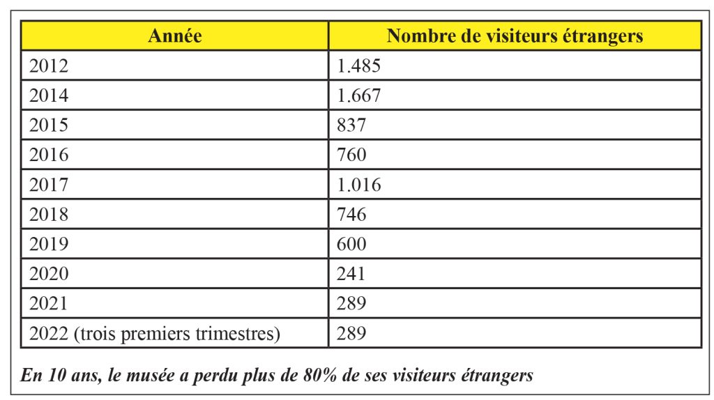 En 2019, les mouvements de revendication des travailleurs du musée (avec les arrêts de travail) avaient occasionné une contreperformance au niveau des visites.  Seulement 6.943 personnes avaient pu visiter le musée.