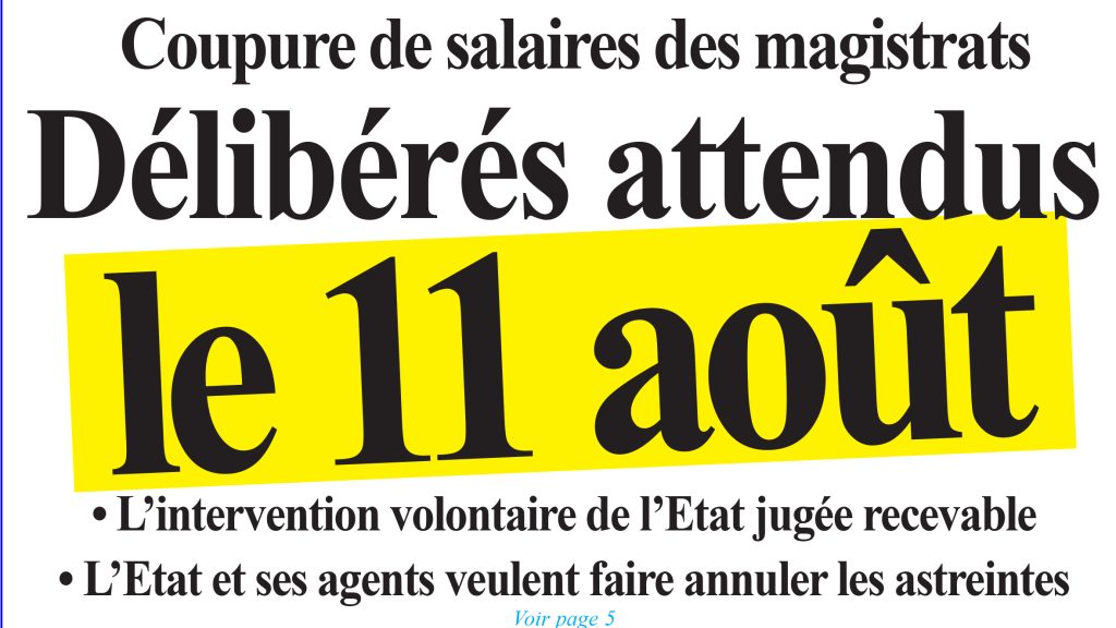 Sur l’«intervention volontaire» dans l’appel de ces agents contre l’ordonnance de liquidation des astreintes dans le cadre du dossier des coupures de salaires des magistrats pour travail non fait au cours de leur mouvement d’humeur des mois de mars et d’avril 2020 , l’Etat et ses conseils ont fait valoir leurs arguments selon lesquels il n’a pas été mis au courant de l’audience qui a ordonné les astreintes pour faire valoir ses intérêts. Ensuite, avec la liquidation des astreintes qui pèsent sur les agents, ceux-ci pourraient se retourner contre leur employeur.