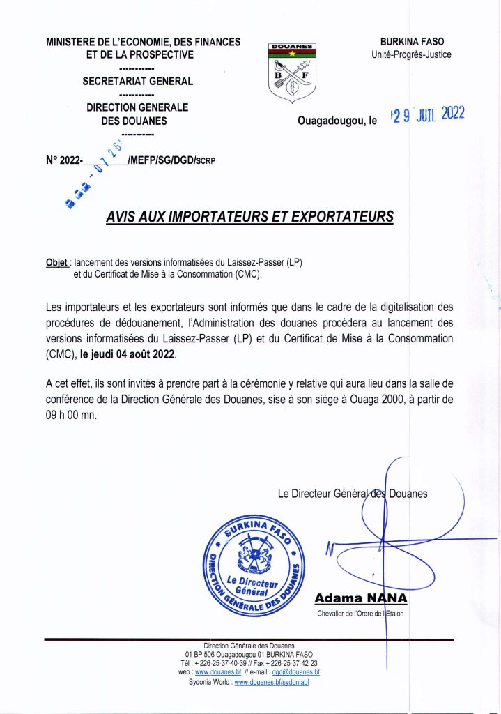 Accueil/A la une/DOUANE: avis aux importateurs et exportateurs A la une DOUANE: avis aux importateurs et exportateurs 1 août 20220 Moins d’une minute Commentaires Numéro d’édition: 450 1 août 20220 Moins d’une minute Facebook X Linkedin Tumblr Pinterest Reddit VKontakte Partager par email Imprimer