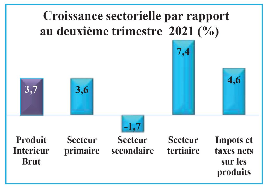 Le PIB réel croît de 3,7% par rapport au deuxième trimestre 2021, imputable à la performance des activités du secteur tertiaire.