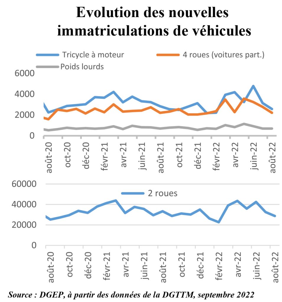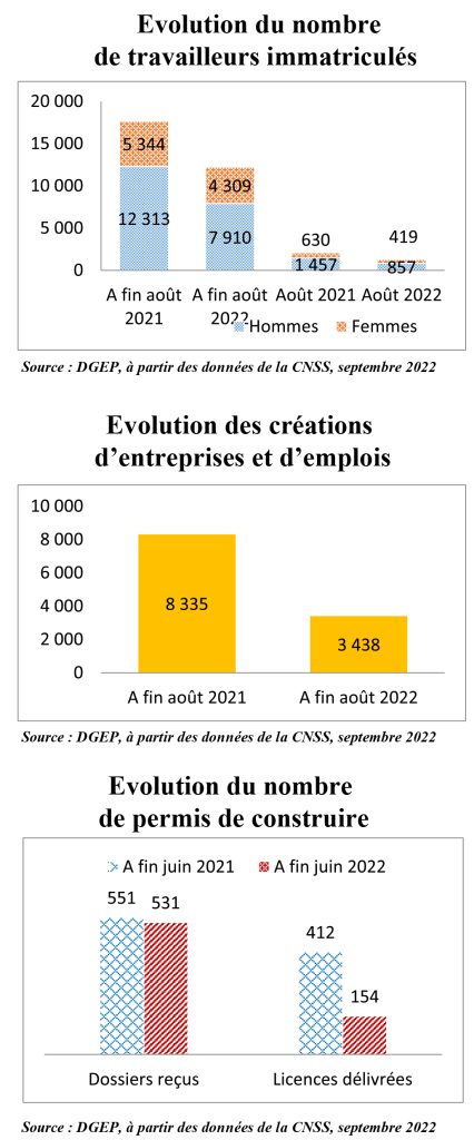 A fin août 2022, le nombre de travailleurs nouvellement immatriculés à la CNSS enregistre une nouvelle baisse, fait savoir le rapport. Il ressort à 12 219 (dont 35,3% de femmes), en régression de 30,8% par rapport à fin août 2021. Concernant le seul mois d’août, le nombre de travailleurs nouvellement immatriculés est de 1 276, en baisse de 6,3% par rapport au mois précédent. A fin août 2022, le nombre d’emplois créés, hormis les recrutements de la fonction publique, enregistre une nouvelle baisse. Estimé à 3.438, il est en baisse de 56,7%, en glissement annuel. Cependant, le nombre d’emplois créés au mois d’août 2022, estimé à 558, est en hausse de 23,7% par rapport à juillet 2022.o
