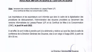 DOUANE: avis aux commissionnaires en douanes agrées