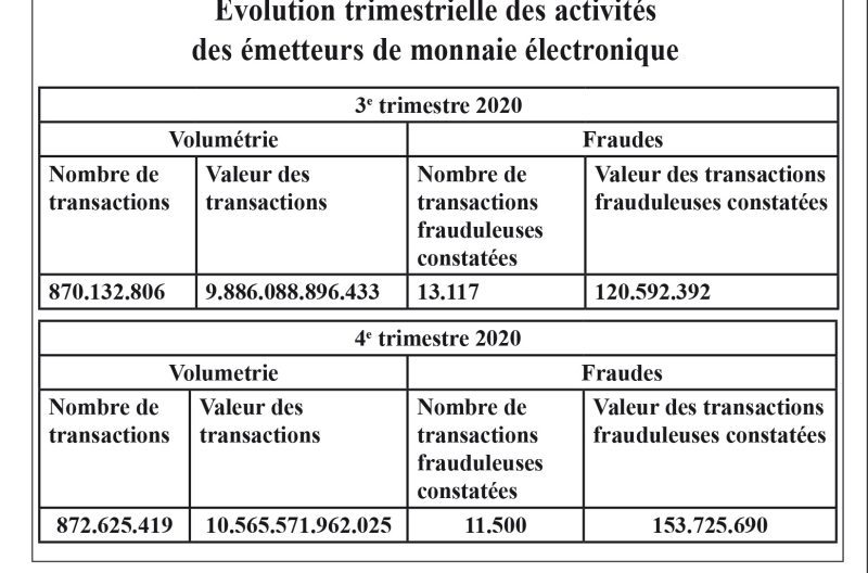 Le nombre de fraudes via les transferts de monnaie électronique a baissé au 2nd semestre 2020. C’est le constat qui ressort du rapport semestriel de surveillance des moyens et services de paiement (11 novembre 2021) par la BCEAO. Selon les statistiques, les émetteurs de monnaie électronique ont déclaré 24.617 cas de fraudes pour un montant de 274,32 millions FCFA. Ces chiffres sont en baisse par rapport à ceux du 1er semestre de l’année d’étude du rapport. A fin juin 2020, ces mêmes émetteurs ont déclaré 35.440 cas de fraudes pour une valeur de 766,61 millions FCFA.