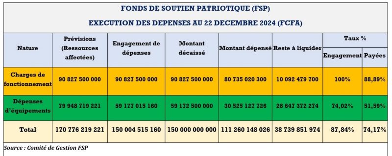 Fonds de soutien patriotique : 170 milliards FCFA mobilisés en 2024