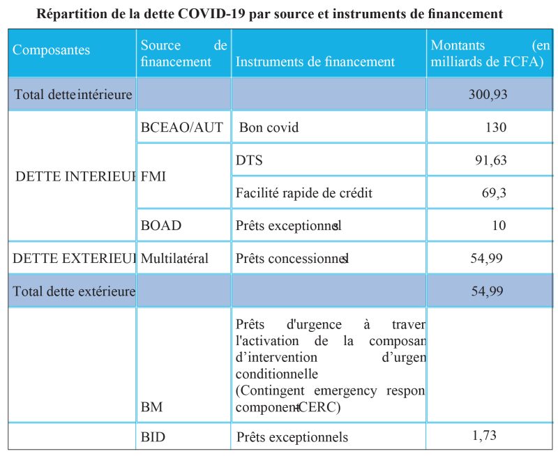 Covid-19: une dette de près de 400 milliards FCFA contractée