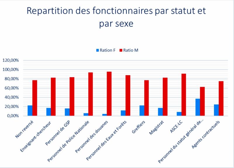 De plus, le nombre de femmes intégrées dans la fonction publique ne cesse de décroître. Il est passé de 5.394 en 2017 à 2.258 en 2021.