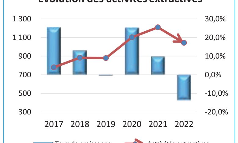 C’est une forte baisse qui a été constatée sur les activités extractives à fin avril 2023, selon les comptes nationaux du 1er trimestre. Suite à l’arrêt ou la réduction des activités de plusieurs mines aurifères et la fermeture de la seule mine de production du minerai de zinc, du fait d’une crise sociale, les industries extractives fléchissent de 13,7% en 2022. Ce qui a engendré une perte de 2,5 points de croissance du PIB national. Cette baisse est la plus importante depuis les années du boom minier au Burkina Faso (2008-2009). En effet, la montée des attaques terroristes a contraint certaines industries extractives à interrompre ou à réduire leur production du fait de difficultés d’approvisionnement ou de sécurité du personnel et de leur mobilité. Ainsi, selon les statistiques du ministère en charge des mines, la production de l’or est passée de 66,858 tonnes en 2021 à 57,675 tonnes en 2022.