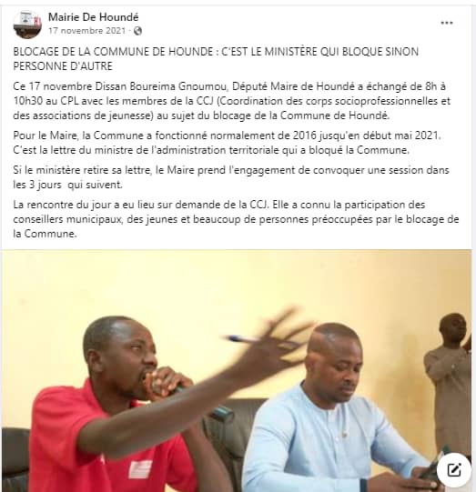 Entre 2019 et 2022, le FMDL, destiné à financer des projets structurants des Communes au Burkina, a accordé en six virements 5.937.825.371 FCFA à la Commune de Houndé. Cependant, des réquisitions de l’autorité de tutelle envers le Conseil municipal, en début 2021, ont entraîné, entretemps, de sérieuses perturbations et des blocages dans la mise en œuvre des projets du Conseil municipal de Houndé. La Commune recevait alors des virements du FMDL sans pouvoir les budgétiser, faute d’instance légale pour le faire. La Commune a fait la budgétisation des trois premiers virements avant la survenue des blocages.
