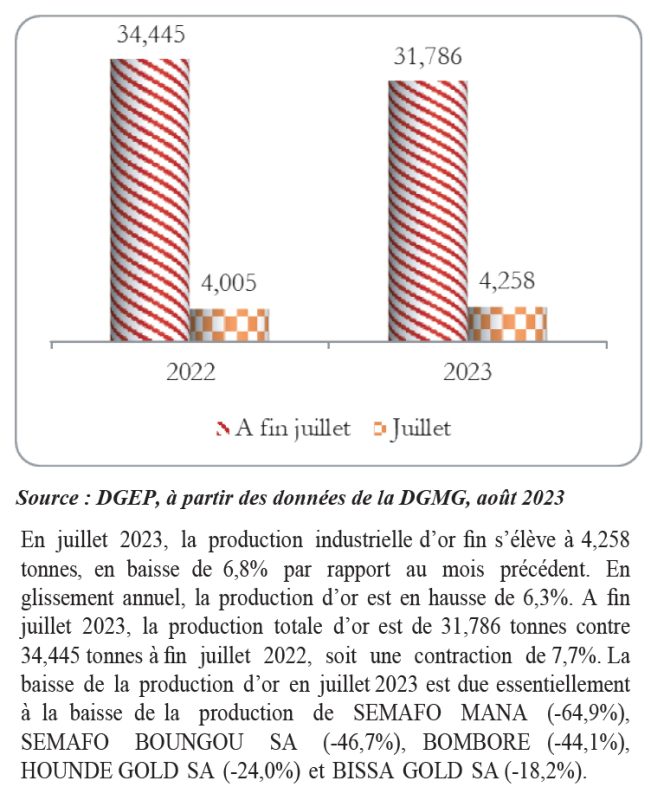 La Direction générale de l’économie et de la planification (DGEP) a publié son rapport de suivi des indicateurs économiques et de développement du mois d’août 2023. Le document fait le bilan de l’évolution de la production d’or, des offres d’emplois, des échanges commerciaux, ainsi que de la masse monétaire.