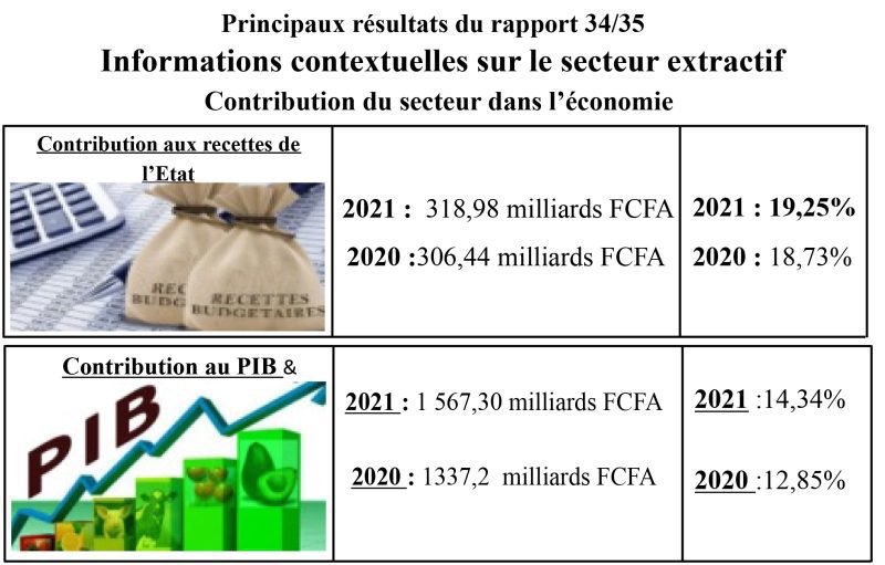 Mais quelle a été la valeur ajoutée aux recettes fiscales de l’Etat ? La réponse à cette question fait ressortir une augmentation de 91,80 milliards FCFA de recettes fiscales entre 2021 et 2020. Il ressort que les revenus nets générés par le secteur extractif, y compris les sous-traitants miniers pour l’année 2021, s’élèvent à 383,5 milliards FCFA, contre 291,70 milliards FCFA en 2020.