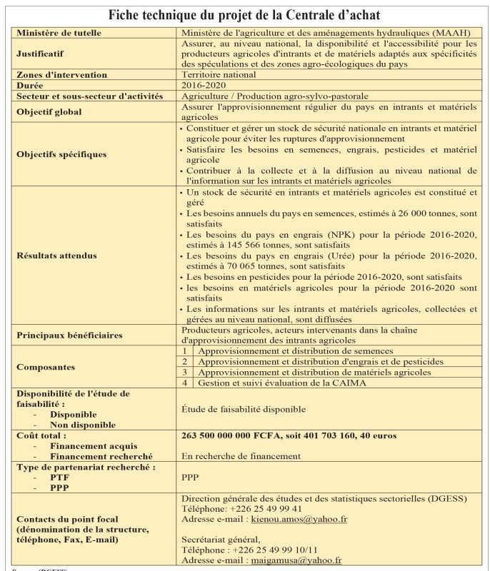 De par sa mission, cet instrument stratégique va permettre, selon le Secrétaire général du ministère de l’Agriculture, Lamourdia Thiombiano, de résoudre trois problèmes principaux. Premièrement, compte tenu du revenu des producteurs, l’accès aux intrants, que ce soit les engrais, les semences, les machines agricoles, est relativement limité. Cette Centrale va permettre aux agriculteurs d’avoir accès à des intrants et matériels agricoles de qualité, en quantités suffisantes à des prix accessibles et en temps opportun.