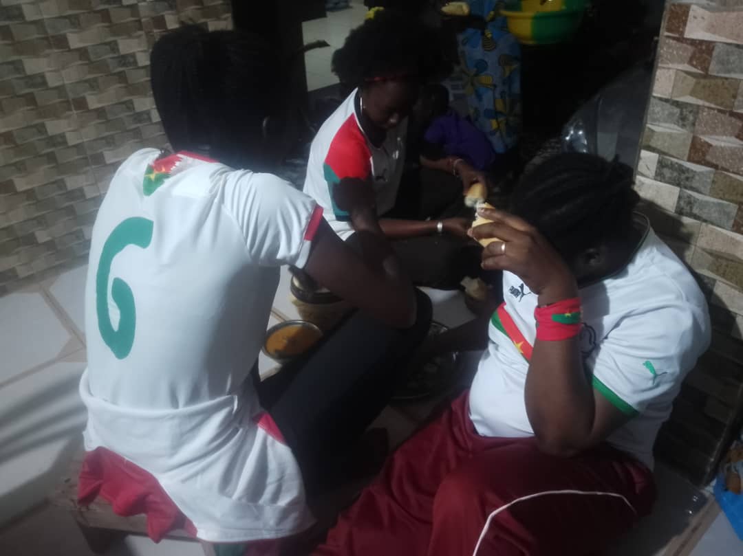 « Quand j’ai vu que les gens cherchaient à manger la nuit, je me suis dit que le lendemain matin le besoin sera plus grand. Avec le peu d’argent que j’avais, je suis allé chercher un sac de riz à la boutique. J’ai réveillé une dame à 22h pour prendre du poisson mais comme elle n’en avait plus beaucoup, j’ai donc pris trois plaquettes d’œufs ajouter. J’ai utilisé les condiments de ma maison et toute la nuit je l’ai passé dans la cuisine. A 7h, le repas était prêt et les gens ont pu manger avant de partir au stade». C’est ainsi qu’elle a veillé pour résoudre une équation : trouver à manger pour ces Burkinabè venus supporter leur équipe nationale. Le plat est servi à 500 F CFA mais en réalité cette somme est juste une contribution pour remplacer la somme investie. « Quand quelqu’un vient je le sers et s’il n’est pas rassasié je le sers encore sans prendre de l’argent », affirme-t-elle. Plus de 150 plats ont été servis. La quantité et la qualité du repas séduisent les bénéficiaires. Face à ce met, le ¼ de pain + un thé à 1 000 F CFA dans le kiosque d’à côté ne fait pas le match. Ceux qui gagnent se frottent les mains et ceux qui sont venus en retard, essuient leurs larmes.