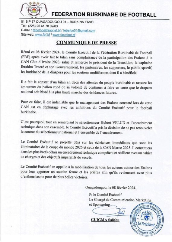 En plus du sélectionneur, c’est tout le staff technique des Etalons qui est concerné par la décision. Le bureau, présidé par Lazare Banssé, a réaffirmé sa volonté de « hisser le drapeau burkinabè à la plus haute marche des échéances futures ».