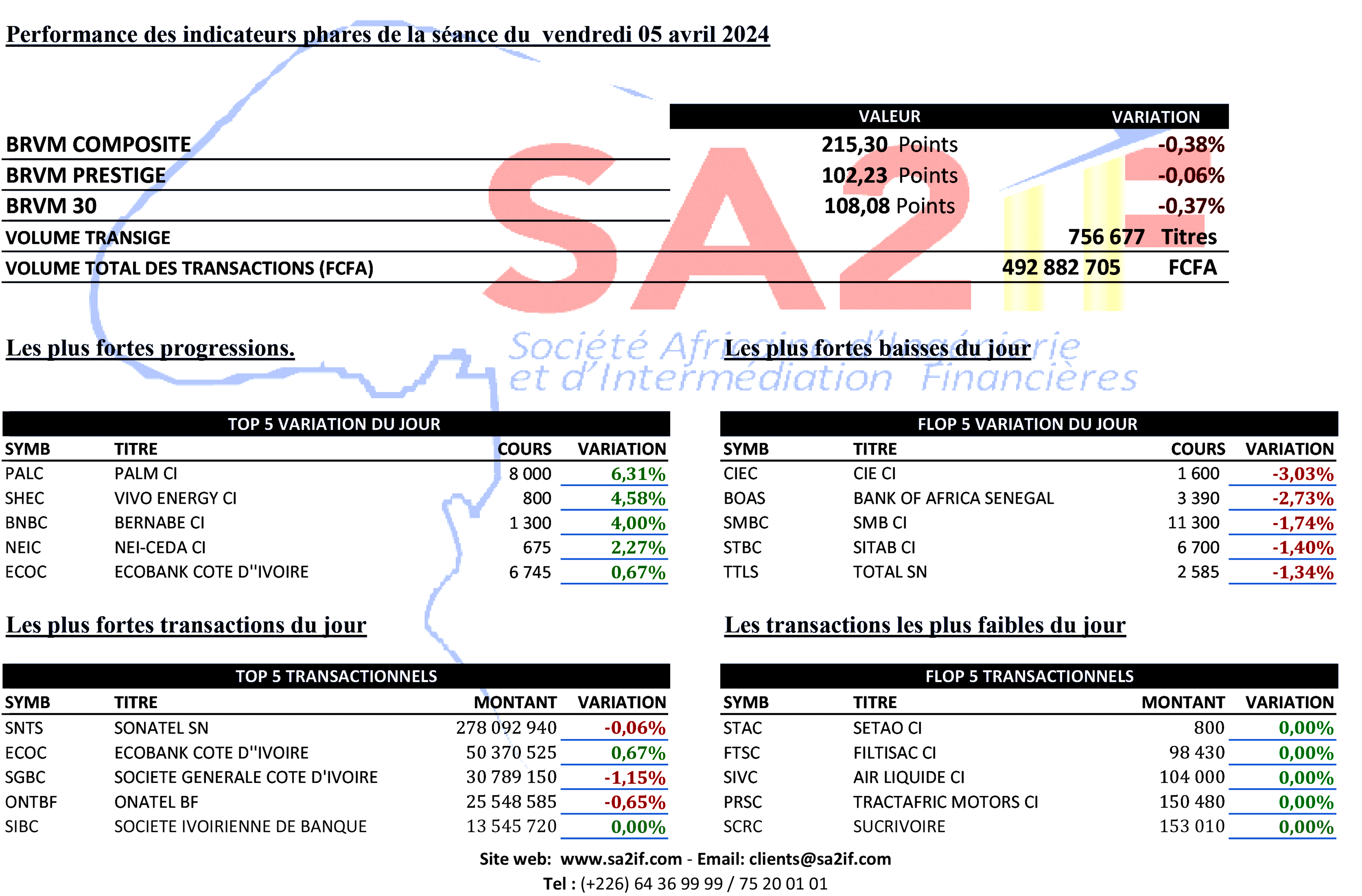 Marché du 5 avril: Onatel Burkina, meilleure performance