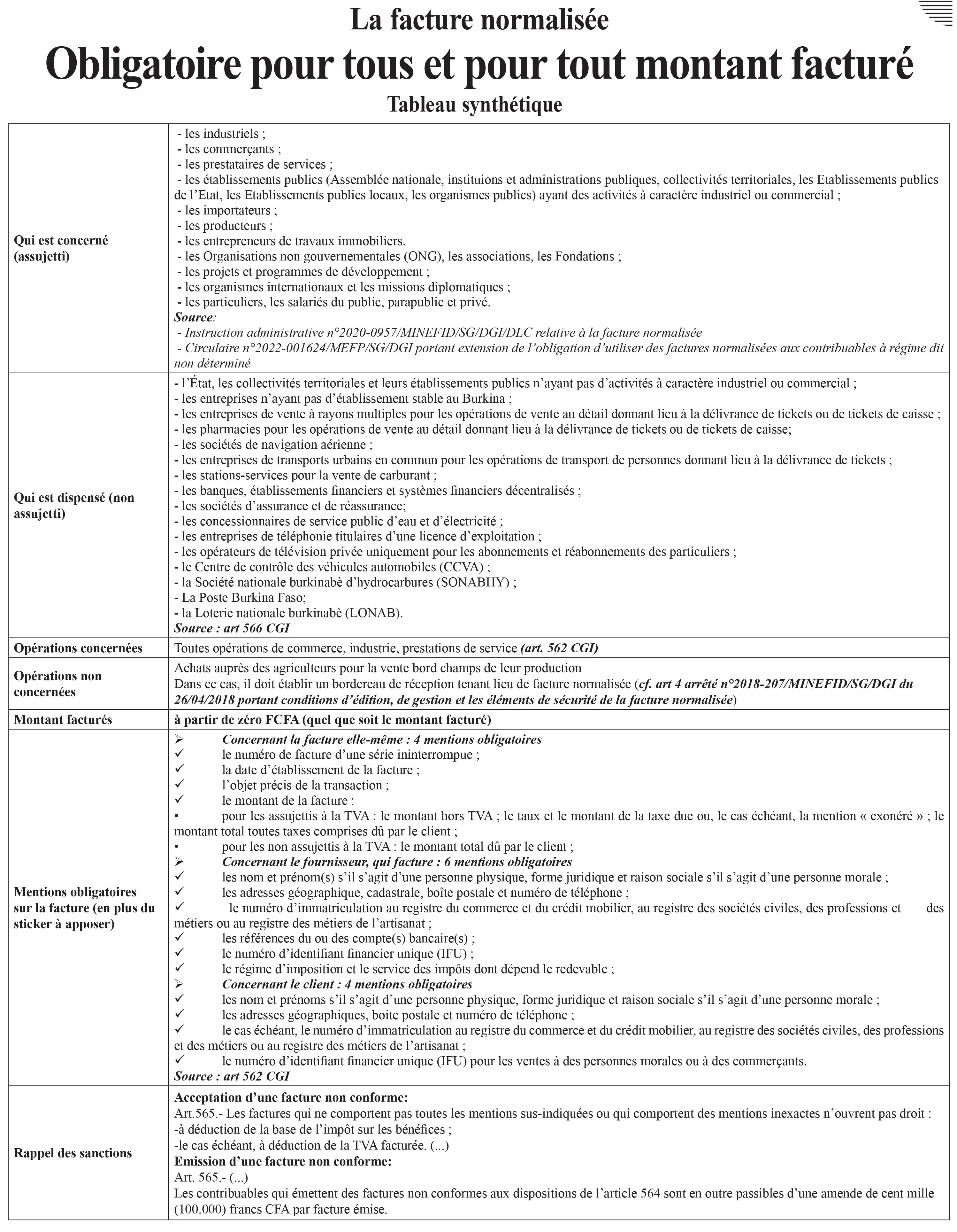 De fait, la facture normalisée renferme des contraintes que certains acteurs économiques, notamment, ceux de l’informel, ne parviennent pas à surmonter, pour les mêmes raisons que celles évoquées en introduction.