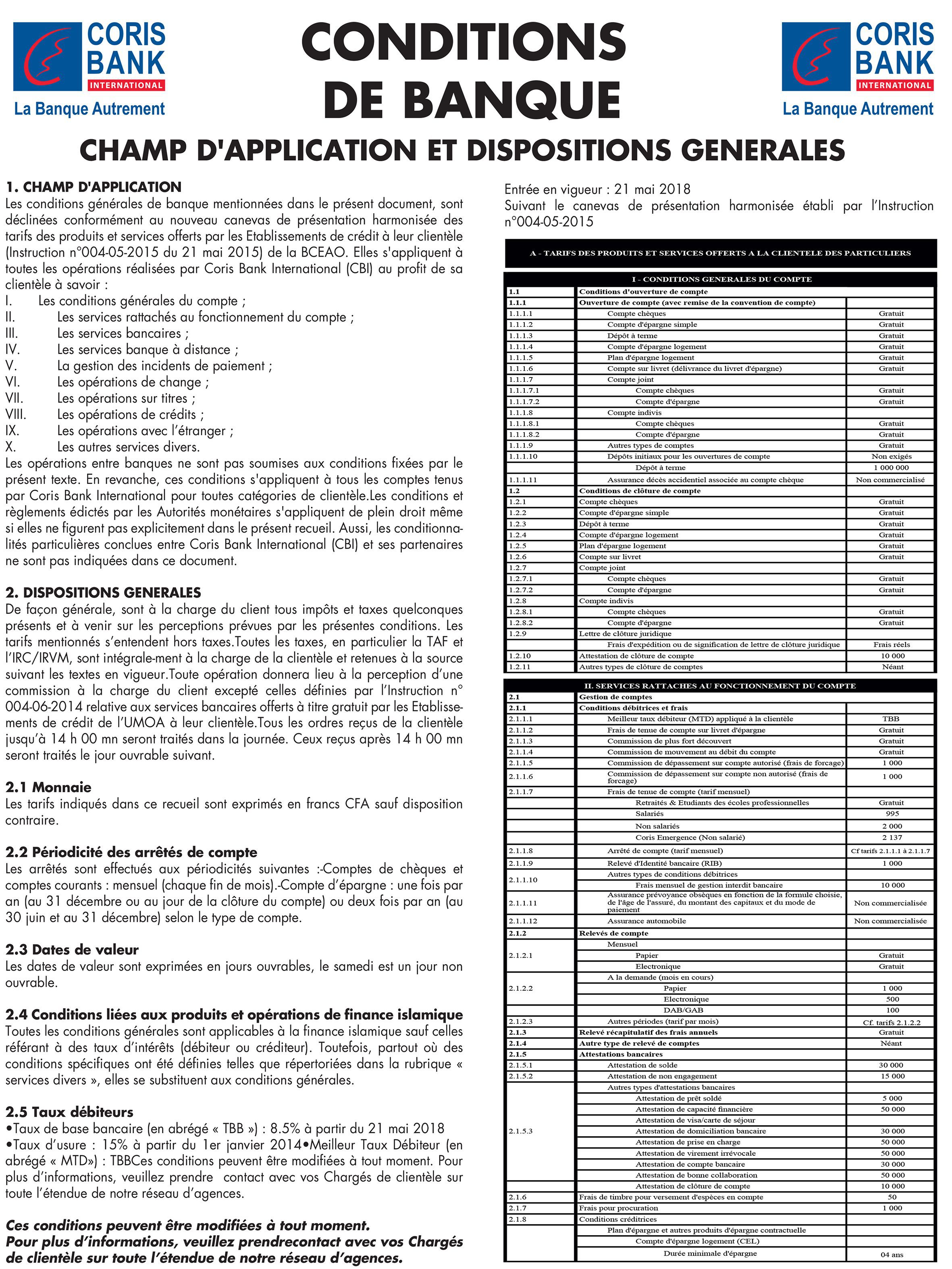 TABLEAU CORIS BANK veuillez cliquer sur le lien