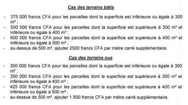 Des frais dont le montant varie selon la superficie et l’emplacement des terrains