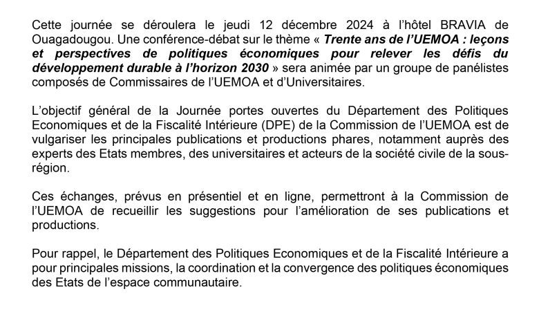 Accueil/A la une/UNION ECONOMIQUE ET MONETAIRE OUEST AFRICAINE: Communiqué de presse A la une UNION ECONOMIQUE ET MONETAIRE OUEST AFRICAINE: Communiqué de presse 9 décembre 20240 Moins d’une minute 9 décembre 20240 Moins d’une minute Facebook X Linkedin Tumblr Pinterest Reddit VKontakte Partager par email Imprimer