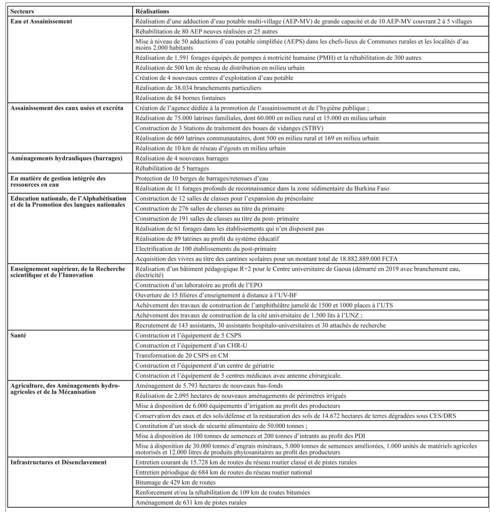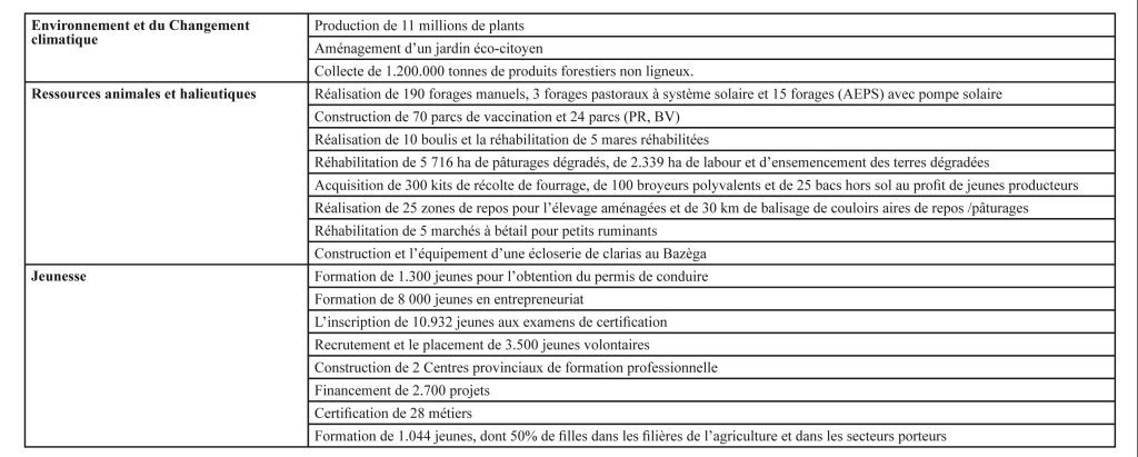 La mise en œuvre de ce budget 2022 va permettre d’obtenir les principaux résultats présentés dans le tableau suivant.