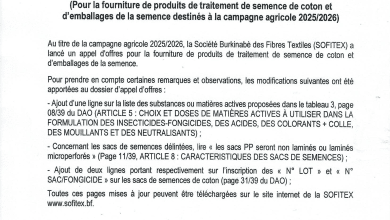 Avis de prolongation du délai de dépôt de l’appel d’offres N°2024-0006/SOFITEX/DG/DCA