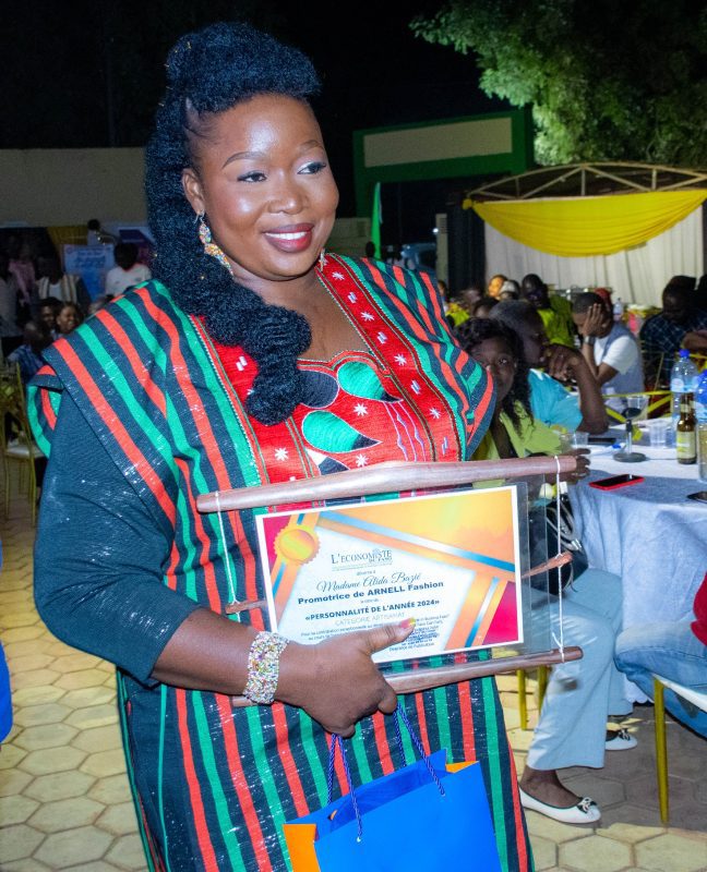 Très connue en Afrique du Sud et en Afrique australe, son art a fini par être reconnu par l’Etat burkinabè qui sollicite ses services pour confectionner des toges aux enseignants-chercheurs burkinabè des Universités et instituts publics du Burkina Faso. Les 650 tenues sorties de son atelier reçoivent l’adhésion des bénéficiaires. Le coup d’essai fut donc un coup de maître. Le gouvernement lui renouvelle sa confiance pour fournir des toges aux acteurs judiciaires, notamment, les Magistrats et Greffiers. « Ce nouveau costume développe un sentiment d’appartenance à la patrie », s’était réjoui le président du Tribunal de Grande instance Ouaga 1, Abasse Nombré, en recevant sa toge. Pour sa contribution exceptionnelle au développement du made in Burkina Faso, au cours de l’année 2024, notamment, la valorisation du Faso Danfani, L’Economiste du Faso décerne le titre de « Personnalité de l’année 2024 », dans le secteur de l’Artisanat, à Madame Ezona Alida Bazié, promotrice de Arnell Fashion.
