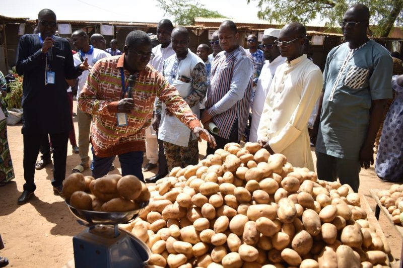 Ce sont 4, 066 tonnes de produits maraîchers composés, entre autres, d’oignons, de pomme de terre, d’aubergine, etc. qui ont été exposées et vendues à la foire. Concernant le concours du meilleur groupement, onze (11) organisations ont été accompagnées par l’UFC-Dori sur des boulis, et des sites maraîchers offerts aux déplacés internes qui étaient présents, ainsi que d’autres producteurs maraîchers de la ville de Dori. Pour cette année, compte tenu du contexte de production (difficile d’accéder à certaines zones pour faire l’évaluation), le jury a décidé de faire de toutes les organisations participantes des lauréats. Cependant, des prix d’encouragement ont été octroyés au nouveau groupement du village de Lerbou. Le Cadre de concertation entre producteurs (CaCoPro) a eu lieu le 8 mars et a permis aux producteurs d’échanger autour des spéculations agricoles adaptées et de renforcer leurs capacités en matière de techniques de conservation de la tomate. A la tribune de la cérémonie de lancement, Timothée Tindano, représentant des producteurs, a remercié l’UFC-Dori pour l’organisation régulière des JMS mais aussi pour l’accompagnement global de UFC-Dori à travers la réalisation des boulis, l’appui technique pour la production, ainsi que la création d’opportunités pour l’écoulement de la production qu’offre les JMS. « Grâce UFC-Dori, nous qui sommes des déplacés internes, nous avons un site pour continuer la production maraîchère. Cela nous aide beaucoup à subvenir aux besoins de nos familles. Et grâce au concours du meilleur groupement au cours des JMS, chacun se bouscule pour être le meilleur en s’appliquant dans les techniques culturales mais aussi en augmentant sa production », a-t-il indiqué.